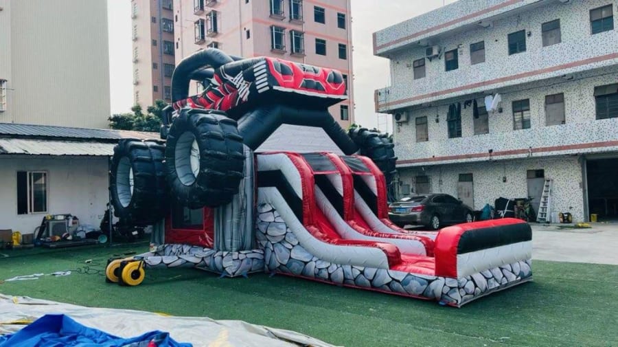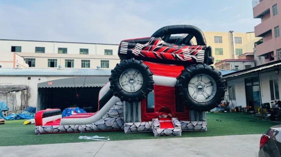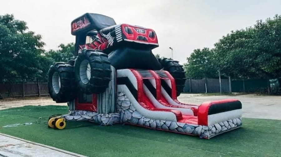 Make your next event unforgettable with the Bounce House With Slides Monster Truck. This standout inflatable blends a roomy bounce area, twin slides, and bold monster-truck graphics. Kids jump, race down slides, and play together in a durable, safe setup. Fast inflation and simple operation make this unit ideal for birthdays, school events, and neighborhood parties.